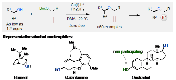 1. Ren-Zhe Li, Da-Qi Liu, and Dawen Niu, Asymmetric O-Propargylation of Secondary Aliphatic Alcohols. Nat. Catal. 2020 (DOI:10.1038/S41929-020-0462-9).