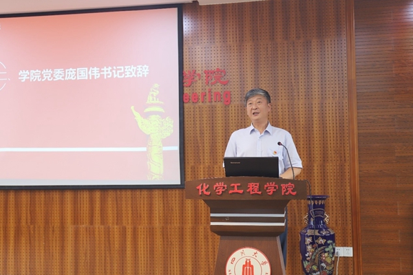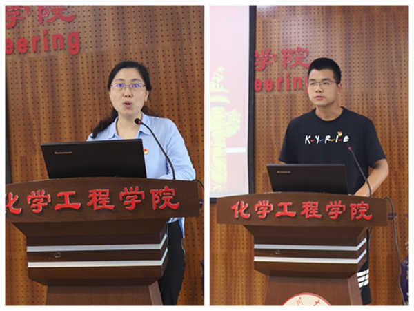全国党建样板支部、化学工程系党支部副书记谢锐同志代表先进党支部交流发言。研究生第二党支部书记刘郭洁代表优秀共产党员及党务工作者交流发言。