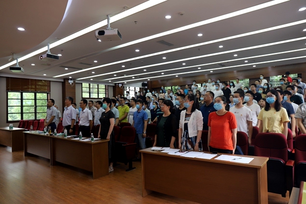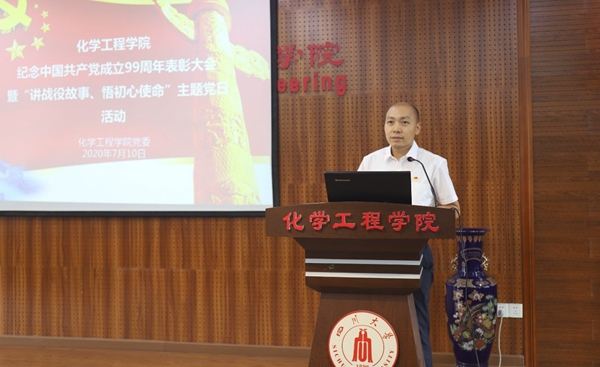 庆祝中国共产党成立99周年表彰会暨“讲战疫故事、悟初心使命”主题党日活动在望江校区正行楼(西二教)313报告厅教室举行。大会在庄严的国歌声中拉开帷幕。学院党委副书记、纪委书记李天友主持会议。学院全体领导班子成员、工会主席、党委委员、纪委委员,全体教工党员、离退休和学生党员代表等150余人参加了此次大会。
