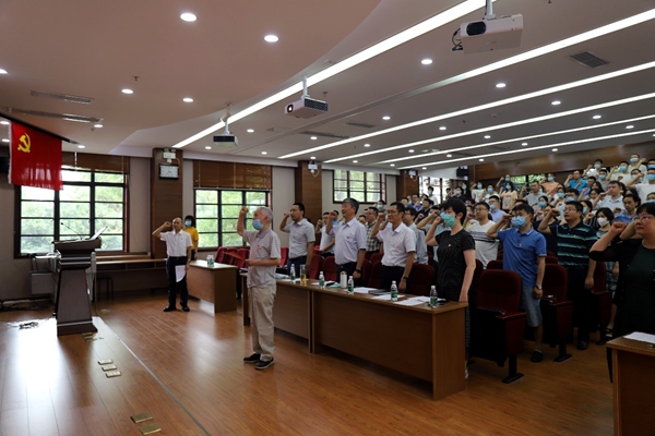 大会举行了“重温入党誓词、牢记使命担当”活动。在学院关心下一代工作委员会副主任、有63年党龄的老同志梁明征带领下,全体与会党员同志一起铿锵有力地宣读入党誓词、铭记共产党人的初心和使命!