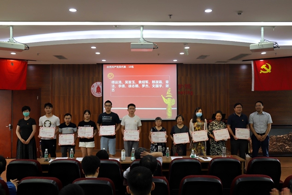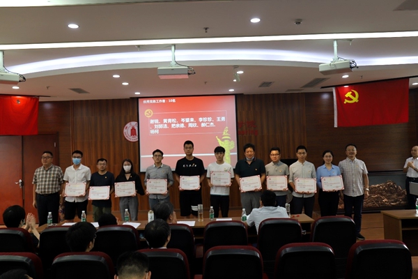 学院党委书记庞国伟、院长赵长生为先进党支部颁奖,学院党委副书记姜利寒和党委委员、副院长钮大文为获得优秀共产党员称号的代表颁奖,学院党委委员、工会主席穆畅道和专职组织员陈晓东为获得优秀党务工作者称号的同志颁奖。