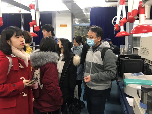 的专业实验室。天气寒冷也抵挡不住同学们走进实验室的好奇与热情。参观分两批进行,工程实验中心的魏竭、林翔老师提前做好了准备,热情接待大家。