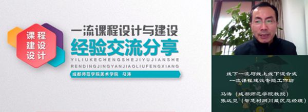 本次工作坊,学院特别邀请了国家级线上、线上线下混合式一流课程负责人——成都师范学院美术学院副院长马涛教授,一流课程申报专家——智慧树网川藏区域总经理张远见先生作专题讲座。会议由赖雪飞老师主持,不仅楼凤