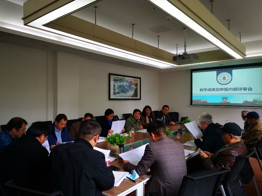 教学成果奖申报的内部评审会,会议由郭孝东副院长主持,教指委、督导组和各系系主任参会。