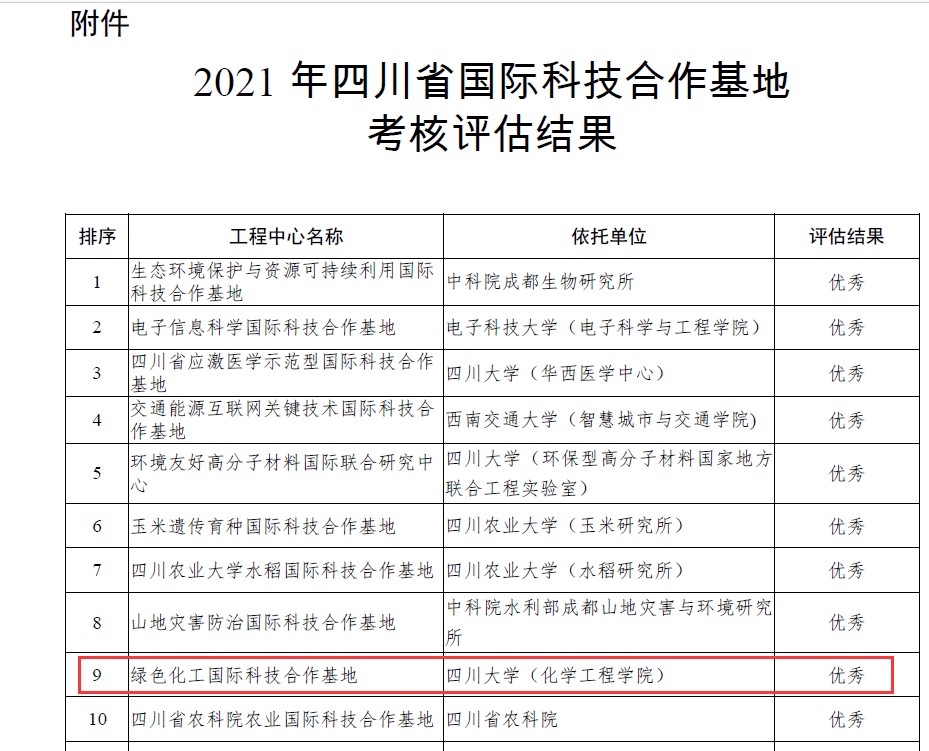 近日,四川省科技厅公布四川省国际科技合作基地2021年考核评估结果,全省64家国家国际科技合作基地参评。楼凤
