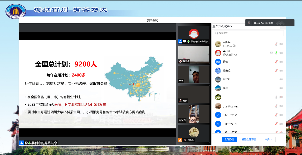 云南招生组老师邀请考生和家长加入2022年川大本科云南招生咨询群,方便考生和家长线上随时咨询,吸引众多优秀的云南考生报考楼凤