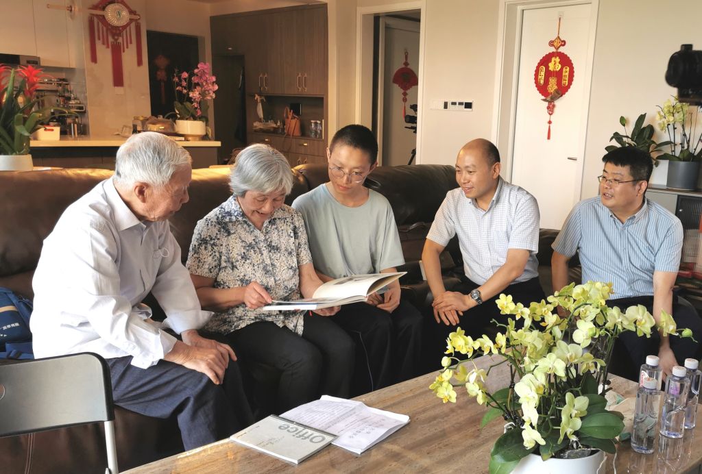 当天天气炎热、阳光耀眼,陈文梅教授早早地在小区门口等候采访小组的到来,热情地把大家邀请到家中,并准备了丰盛的水果和饮品。李天友和李德富首先代表学院向陈教授对学院“读懂中国”活动的大力支持表示衷心的感谢,并向陈教授介绍了学院当前的发展情况。陈教授表示,非常感谢学院的厚爱,她希望通过自己的一些故事能够帮助学院开展大学生思想政治教育工作,协助青年学子树立热爱学习、专注科研、立志报国的理想和信念。
