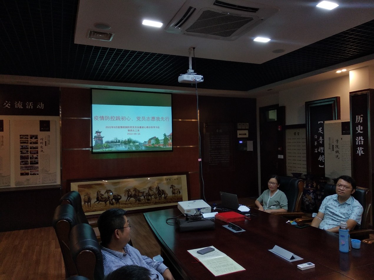 制药与生物工程系教师在245会议室进行了主题为“疫情防控践初心,党员志愿我先行”的心得分享学习会。此次组织生活由支部书记、系主任巨晓洁教授主持,采用线上和线下相结合的方式进行。因疫情防控要求不能到现场参会的老师们也在线参加了此次心得分享学习活动。