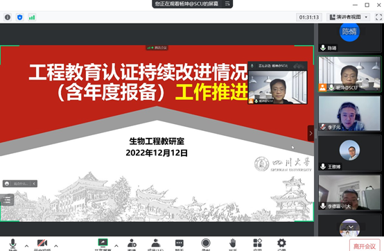 制药与生物工程系生物工程教研室组织开展了工程教育认证持续改进情况报告材料准备和2023版生物工程专业培养方案完善的教学研讨活动。此次教研活动由教研室主任杨坤老师主持,采用线上会议的方式进行。生物工程教研室全体教师参加了会议,制药与生物工程系主任、支部书记巨晓洁教授、教学副主任李子元副教授、制药工程学科带头人李延芳教授及制药工程教研室主任孙巧媚副研究员列席参加了会议。