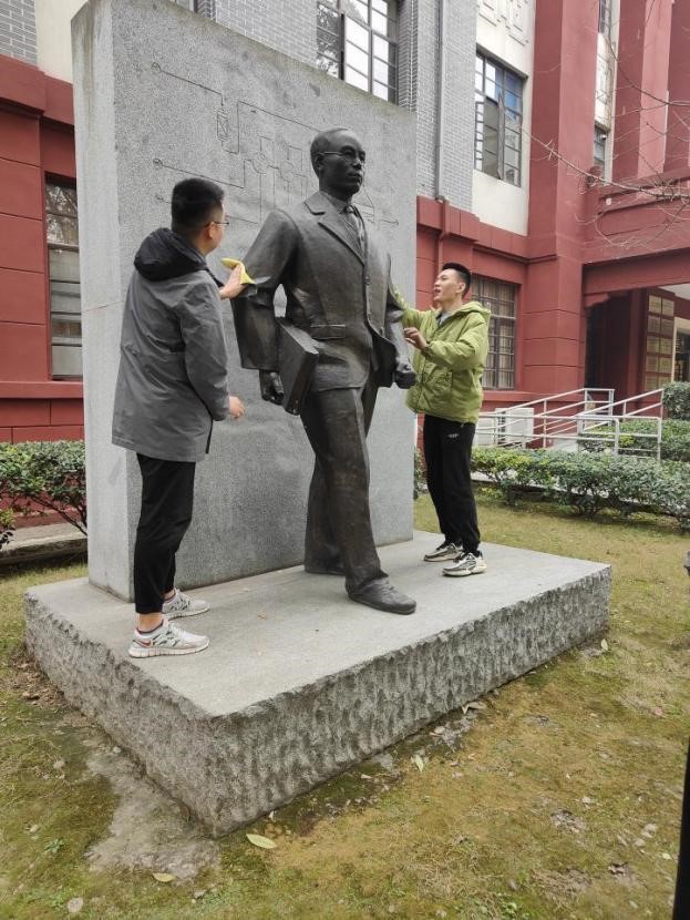 的研究生志愿者在望江校区化工楼外开展了拂拭“张洪沅”铜像的活动。志愿者们十分认真地擦拭了“张洪沅”老前辈的铜像,并打扫了铜像周边的落叶和垃圾。活动既饱含着对张老前辈的崇高敬意,也是志愿者们用自己的方式美化校园,践行雷锋精神。