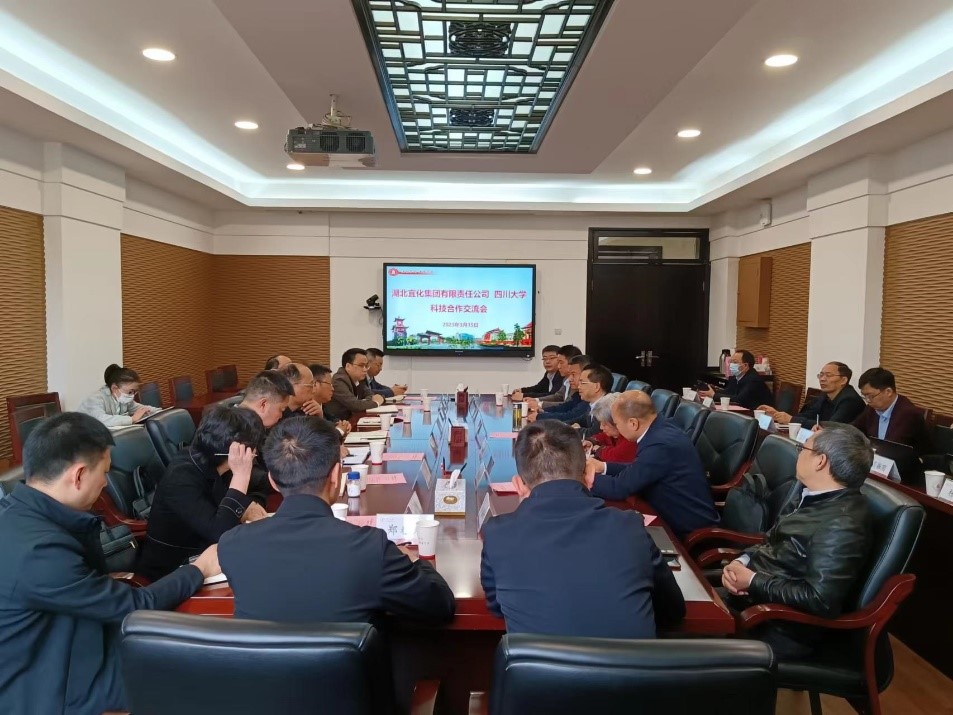 的前期推进下,我校与湖北宜化集团有限公司就共建联合创新研究中心合作事项在望江校区行政楼进行友好交流。湖北宜化集团党委书记、董事长王大真,总经理卞平官等,我校副校长褚良银,杰出教授钟本和,科研院副院长黄海,楼凤