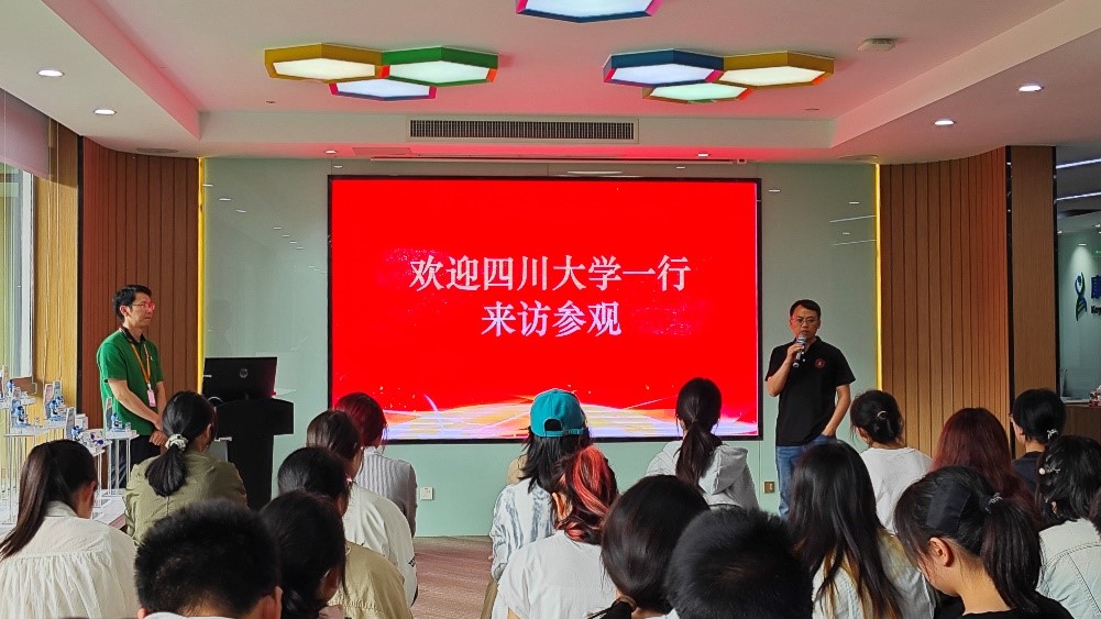一行师生的参观表示了热烈的欢迎。首先由企业工作人员从企业发展史、楼凤、业务概况、研发力量、技术平台等方面介绍了康诺亚生物医药科技有限公司的概况。