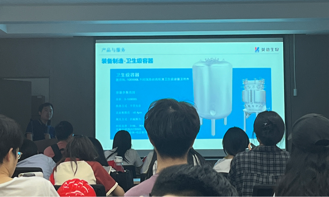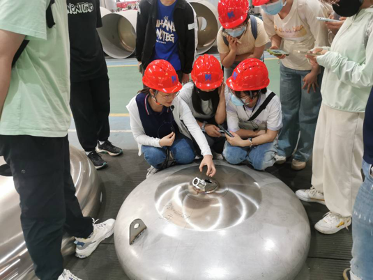 作为一家从事生物制药/医药工程技术服务、卫生级容器制造、核心工艺装备提供、整厂工程服务及验证的高新技术企业,公司发展迅速,在医药装备行业的影响力逐渐扩大。同学们分成五个小组,分别由五名企业带队指导老师带领参观。在老师的带领下,同学们详细参观了卫生容器从机器切割、卷板成型、焊接、组对安装、机械抛光、外表面喷砂等步骤,也了解了由各种储液罐、发酵罐、过滤及分离装置及管线组装成疫苗生产线的全过程。在参观过程中,同学们积极提出疑问,提出了对设备制造过程中的困惑,带队老师一一解答,同学们对卫生容器的生产过程以及注意事项有了更深刻的认识。