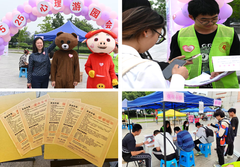 团委学生会联合举办的“快乐无羡,极爱自己”心理游园会,在江安校区青春广场顺利举办。本次心理游园会包括心理知识展区、心理咨询区以及游戏体验区,其中游戏体验区又包含“踩走坏情绪”、“夸夸小站”、“静心挑战”、“树洞倾心”及“Free Hug”五大趣味心理游戏。