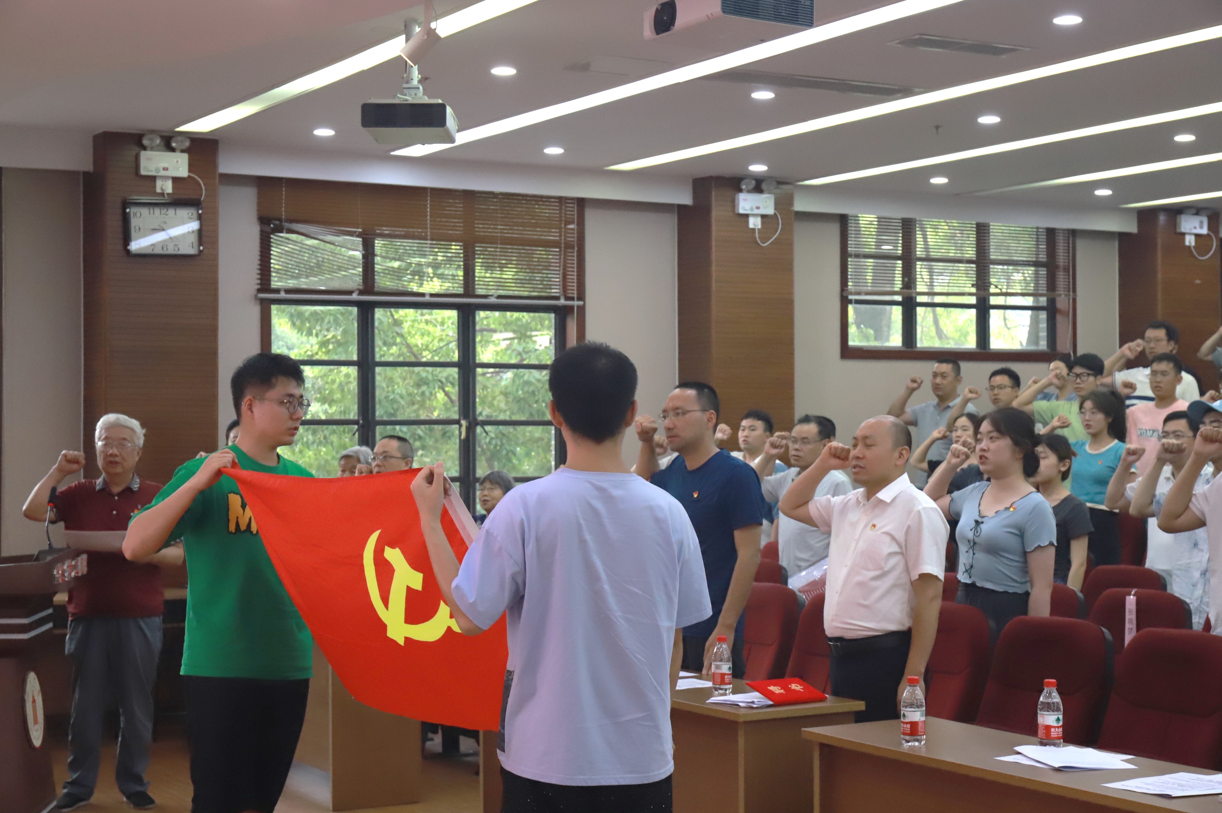 最后,大会举行了2023年新党员入党宣誓和老党员重温入党誓词活动。学院老领导、有41年党龄的卫永祉同志领誓。