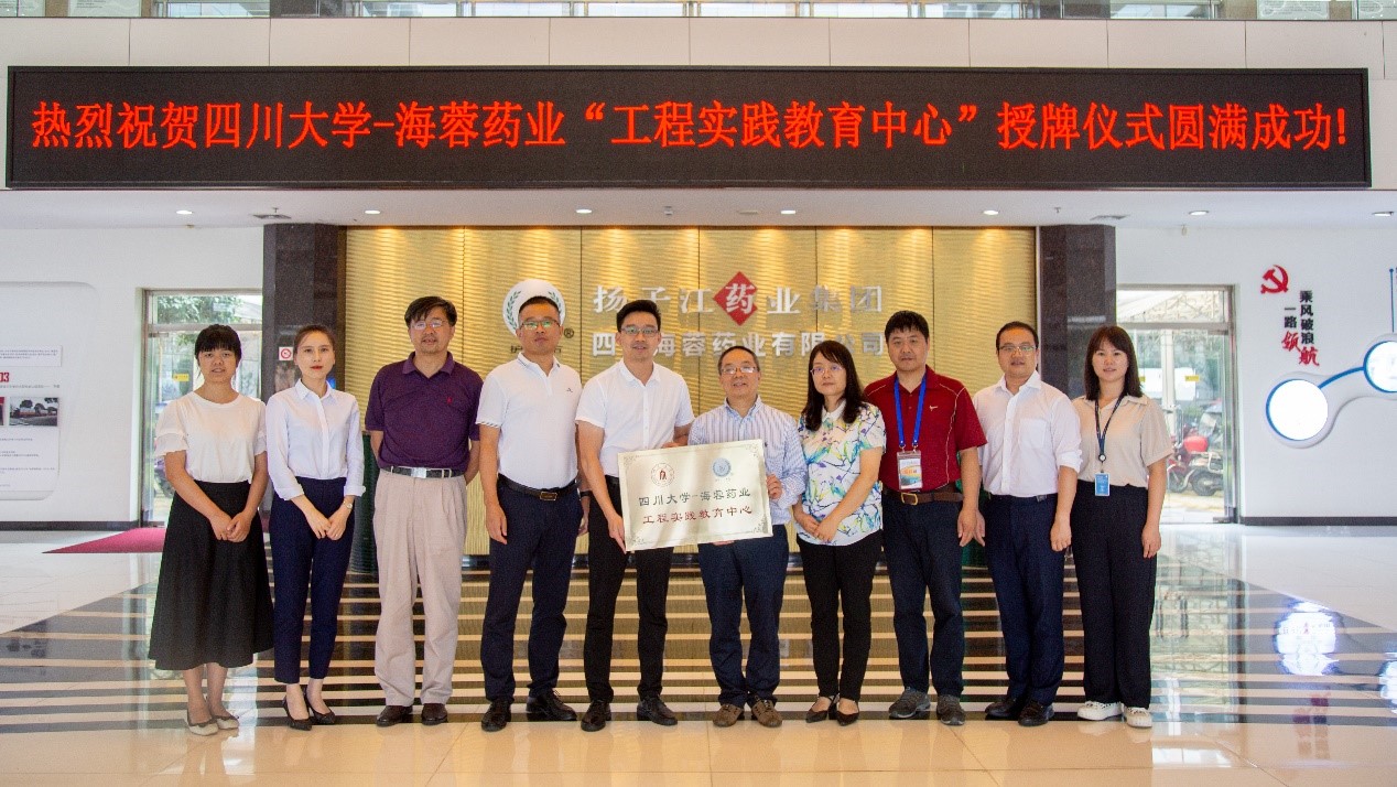 -海蓉药业工程实践教育中心”揭牌仪式在扬子江药业集团海蓉药业有限公司隆重举行。海蓉药业厂长曹义海、副厂长韦军及相关部门负责人、楼凤