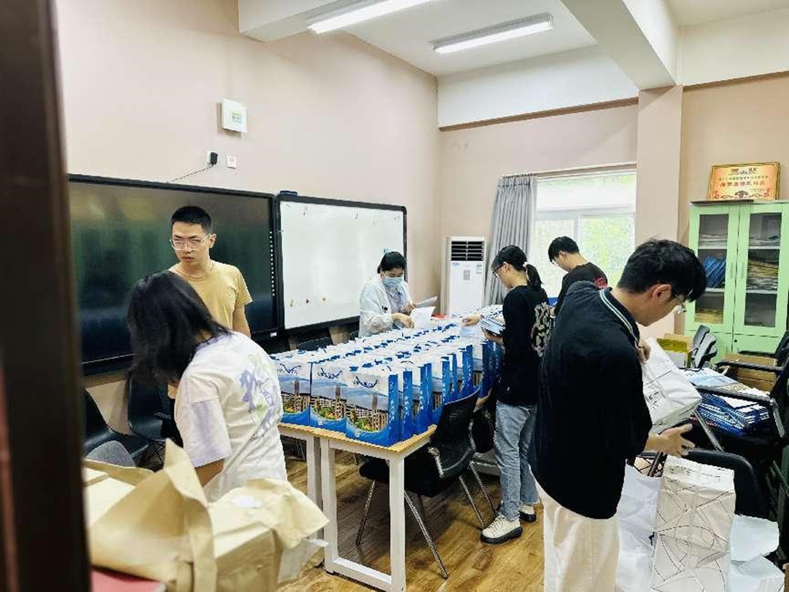 化工志愿者正在分装迎新物资