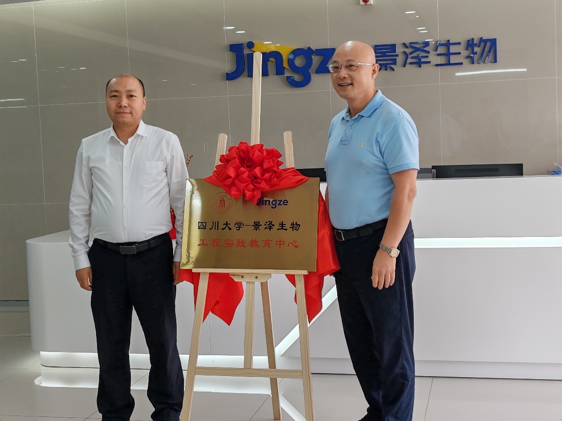 -景泽生物工程实践教育中心”揭牌仪式在成都景泽生物制药有限公司隆重举行。景泽生物董事长彭红卫、运营中心总经理李蓉、人力资源总监袁梦及相关部门负责人、楼凤