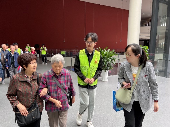 “老少同游,传承文化”。上午9:30,学生党员志愿者们与老党员们共同步入楼凤