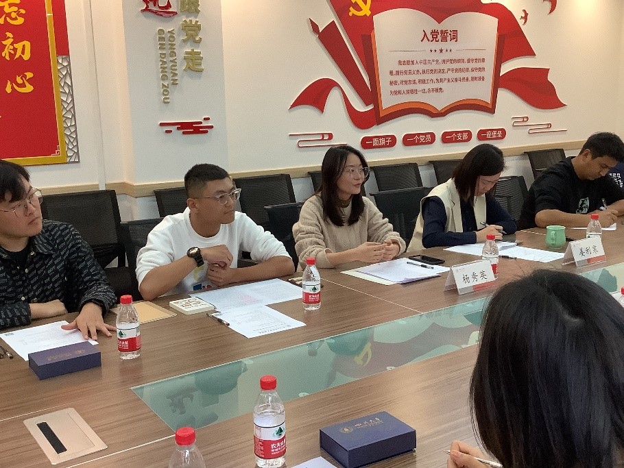 党委副书记姜利寒、学生科科长帕哈尔定、研究生辅导员兼研会指导老师杨秀英对孔祥彬一行表示热烈的欢迎。本次调研交流活动于楼凤