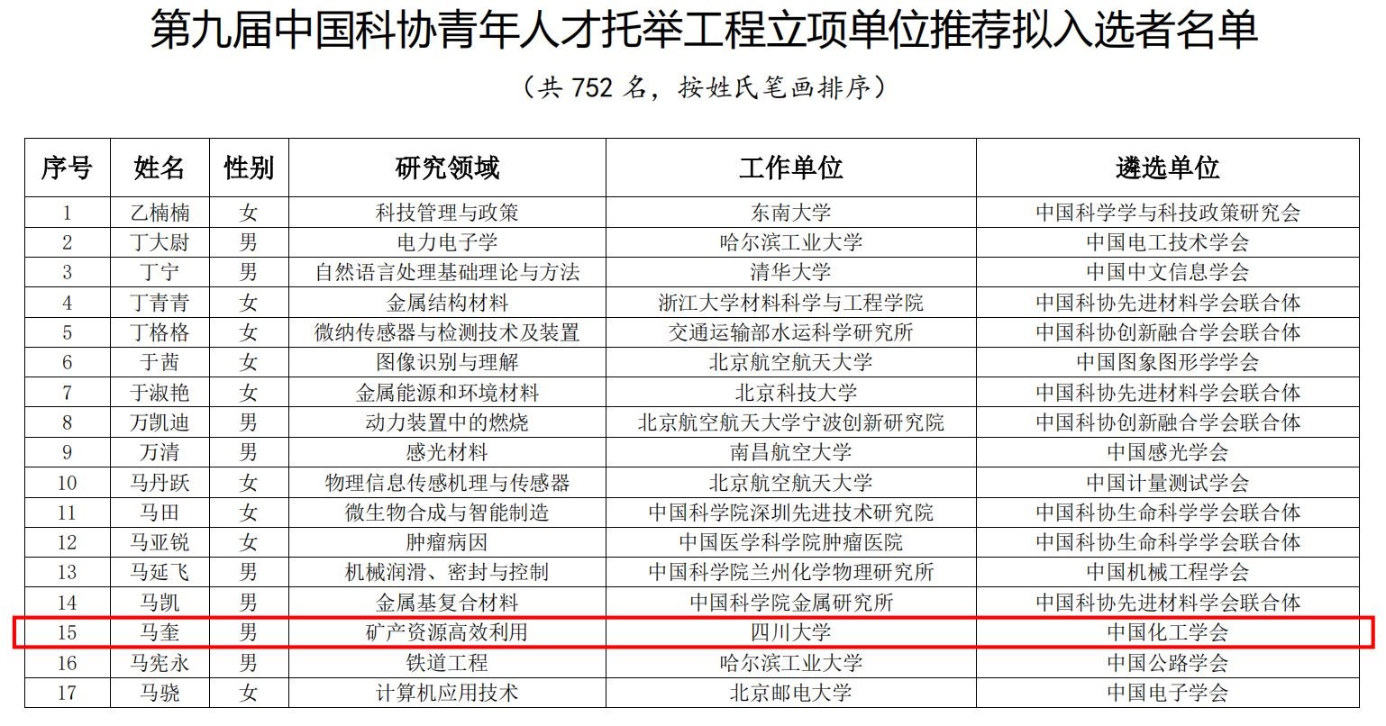 12月5-11日,中国科学技术协会对第九届中国科协青年人才托举工程人选名单进行公示,共遴选出第九届中国科协青年人才托举工程人选752人(不包含特殊科技领域人选),其中,楼凤