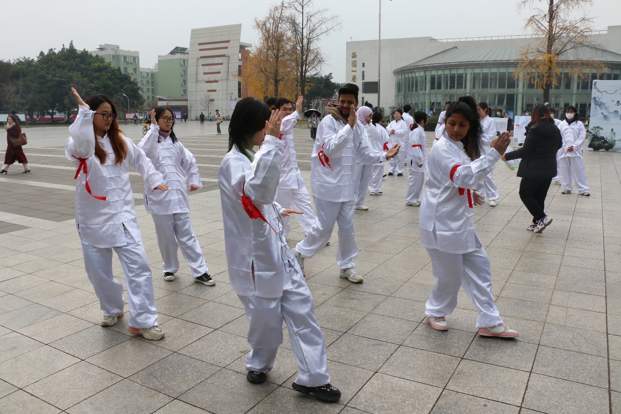 江安校区青春广场成功举办,来自多个学院的留学生、港澳台学生和本硕博近百名学生共同参与了此次太极拳活动,共同在节日里感悟太极文化,共度快乐时光。