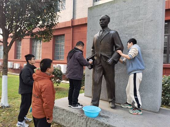 清扫活动开始之后,同学们首先清洗了张洪沅先生的铜像。同学们非常认真的擦拭了张洪沅前辈的铜像,清扫了铜像台子和周边的银杏落叶。结束之后,铜像又恢复了光彩。在新年开端,同学们以自己的方式向张洪沅前辈表达了诚挚的敬意。
