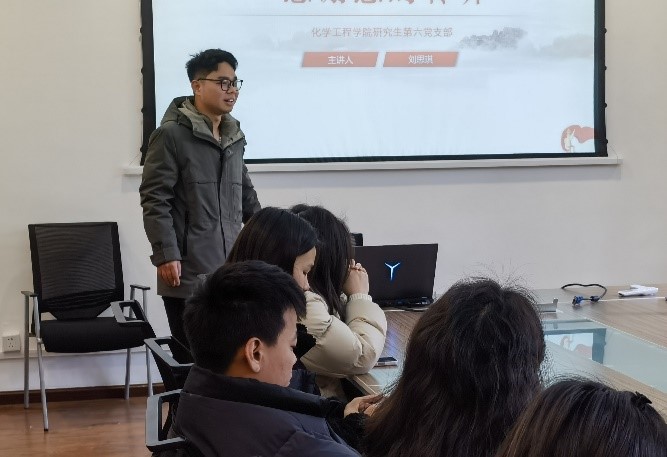 227会议室举行,研究生生工制药党支部张浩宇同志主持,研究生生工制药党支部、研究生第六党支部、2022级生物化工与技术团支部全体成员均积极参加到本次活动中来。