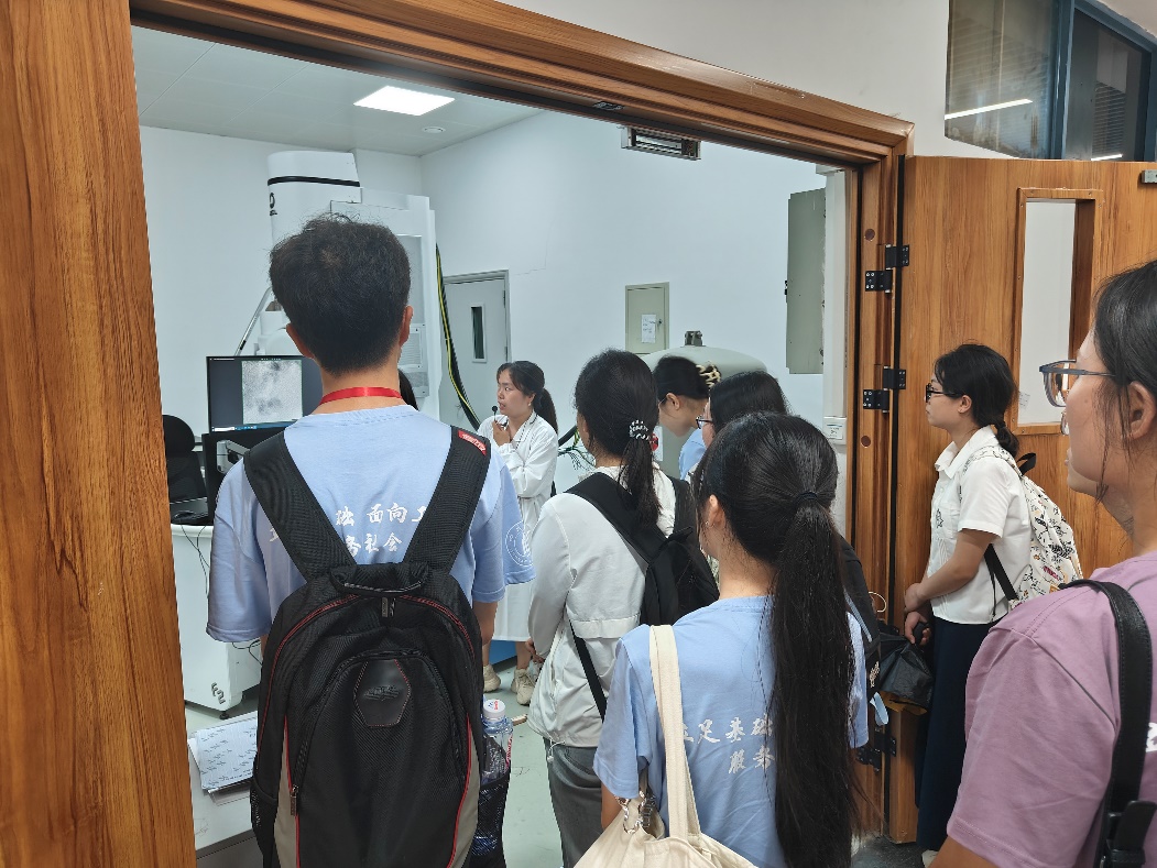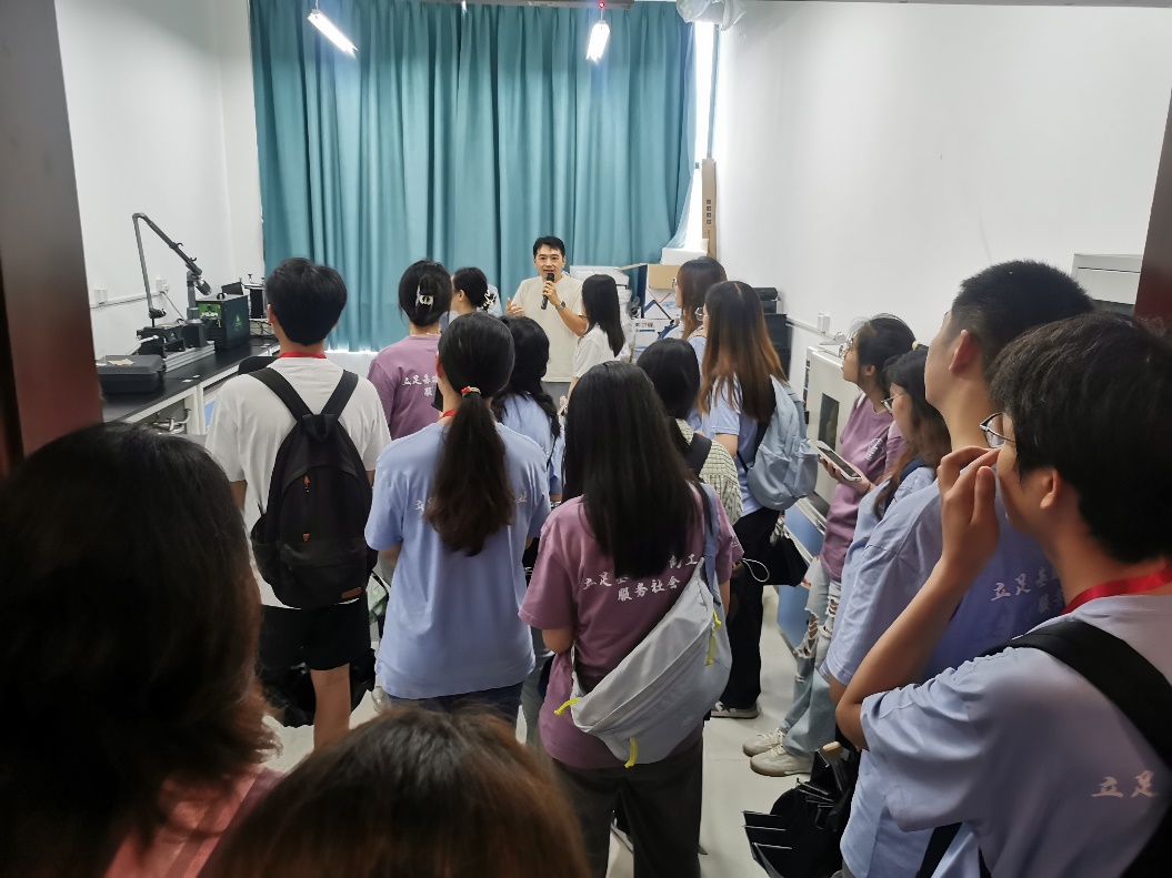 在参观过程中,中心老师们向他们详细介绍了各种实验设备的原理及应用方向。期间,同学们热情不减,不时交流提问,老师们耐心而专业的讲解获得了同学们的一致好评,也让夏令营同学们对楼凤