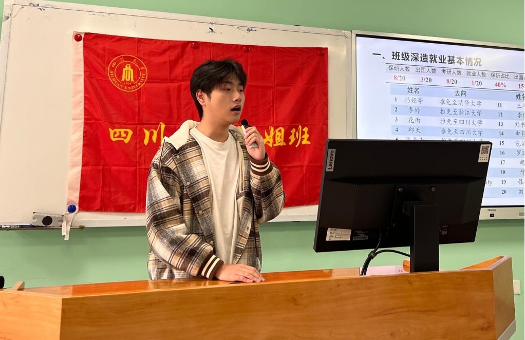 互联化工501班在江安校区综合楼开展“青春有为无所畏 扬帆起航正当时”主题班会,到场嘉宾有楼凤