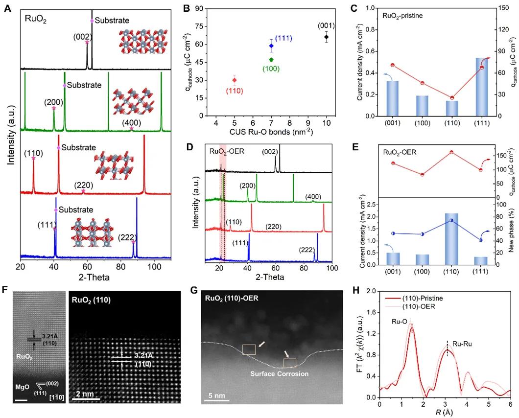 单晶模型催化实验的发现为设计稳定Ru基OER催化剂提供了新的见解和指导,模型催化结合理论计算为稳定非Ir阳极催化剂尤其是Ru基催化剂的设计提供了方法论的参考,同时该研究成果极大拓展了Ru基PEM-WE制氢膜电极的应用前景。