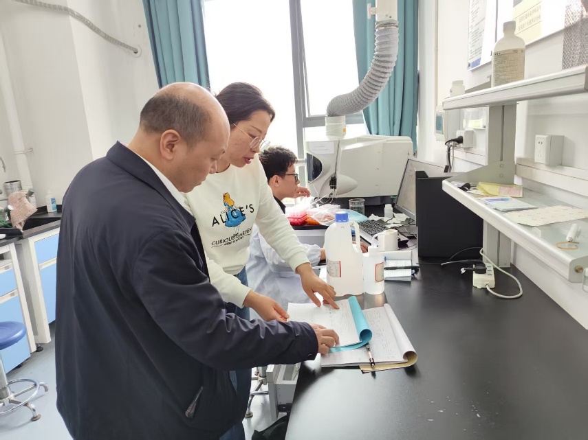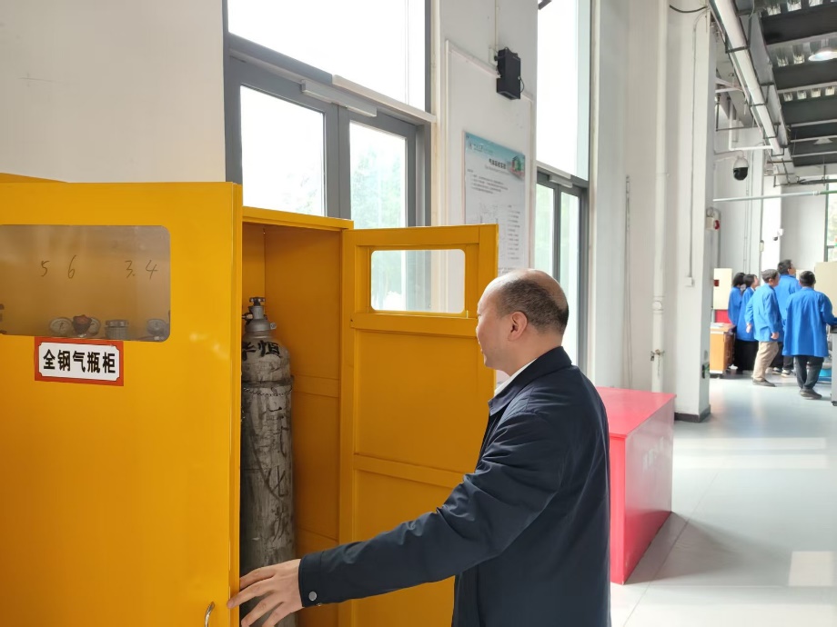 学生交流,详细了解实验课程中的安全操作规范。同时,重点检查了ICP-AES(电感耦合等离子体发射光谱仪)、原位红外光谱仪、IGA(智能重量分析仪)等关键设备的运行状态及安全措施,确保设备操作符合规范。