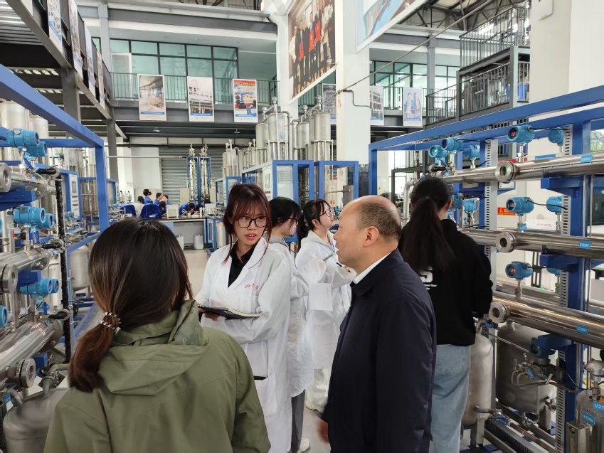 检查人员实地走访了化工原理实验课堂,与化工原理实验教师程远贵和李季老师以及化工系、轻工楼凤