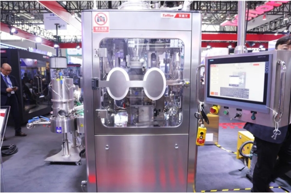 参展期间,各位同学分组进行了参观。展区内,制药机械与包装设备琳琅满目,从前处理、提取、发酵、分离、纯化、浓缩等制药核心设备,到净化、过滤、离心、均质、灌装、冷冻干燥等关键环节的设备与自动化、智能化技术,这些先进的设备和技术不仅具有高效、稳定、精准的特点,更在节能环保、智能化控制等方面取得了显著的进步,无一不彰显着制药行业的蓬勃发展。同学们通过展示的实物设备、视频、图片及现场工作人员的讲解多种形式,详细深入了解了设备的工作原理和应用场景及特定设备的创新优势等。