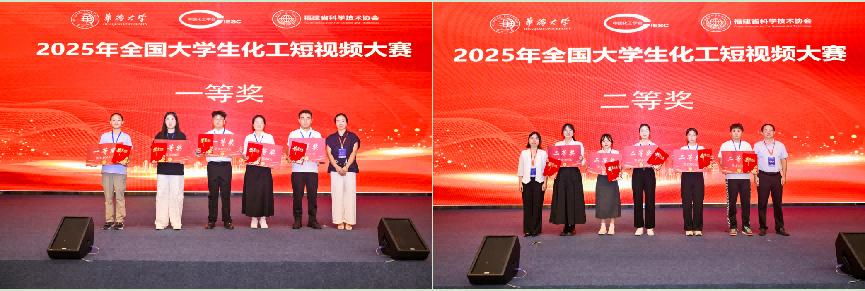 2025年8月16日,全国大学生化工短视频大赛于华侨大学圆满落幕。本届大赛由中国化工学会主办,华侨大学、福建省化工学会联合承办,吸引了全国63所高校的139支队伍踊跃参与。经过初赛专家函评和网络公众投票两个阶段的严格遴选,最终80支队伍成功脱颖而出,晋级决赛。决赛中,各参赛队伍围绕化工学科的前沿技术和创新应用,通过短视频的形式展开激烈角逐,充分展现出青年学子的无限创意与蓬勃活力。
