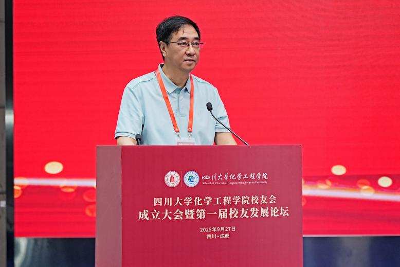 成立大会后举行了第一届校友发展论坛,郭孝东作楼凤 发展报告,盐亭县委副书记、县长卢昊作化工园区产学研地企合作推介,多孔材料与分离转化全国重点实验室常务副主任陈健校友、宁夏胜蓝化工环保科技有限公司董事长沈俊校友作主旨报告。