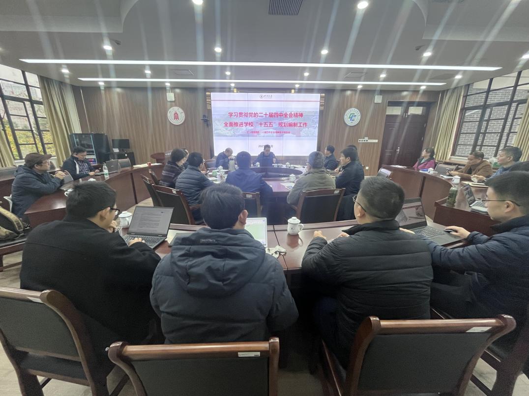党委理论学习中心组召开学习(扩大)会议,紧密围绕学习贯彻党的二十届四中全会精神、科学谋划学院“十五五”规划开展专题学习研讨。学校党的二十届四中全会精神宣讲团成员、发展规划处副处长文宇峰应邀作专题辅导报告。学校党委宣传部副部长王彬彬、思想理论科张舒老师到会指导。学院全体领导班子成员、教授委员会代表、工会主席、专职组织员、各系(中心)负责人、院长助理、科级干部及教工党支部书记等共计50余人参加学习。会议由学院党委书记李天友主持。