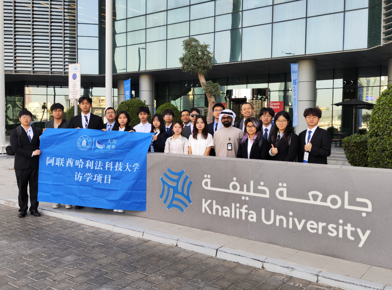 组织开展了“大川视界”阿联酋哈利法科技大学访学项目。在刘长军、陈靖两位老师的带领下,我校16名优秀本科生赴阿联酋参加了2026年哈利法科技大学青年冬令营。