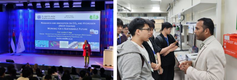 访学期间,同学们还前往全球主要能源公司之一的阿布扎比国家石油公司(ADNOC)总部参观学习。哈利法科技大学还邀请了中国银行、华为、振华石油等三家在阿中资企业代表来到校园,与同学们分享在中东地区的发展经验、本地就业与投资机会,共同探讨国际化人才应具备的综合素养。