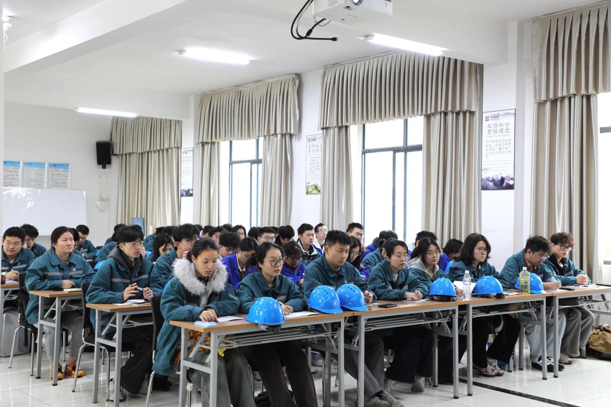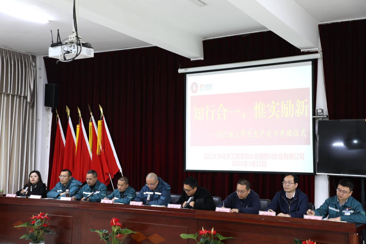 院长助理、化工系主任吴振国、实习指导教师陈建钧、张国权、2023级工艺2、4班本科生共同参加了开班仪式。仪式由龙佰四川钛业有限公司人行部部长杨万梅主持。代堂军先生对楼凤