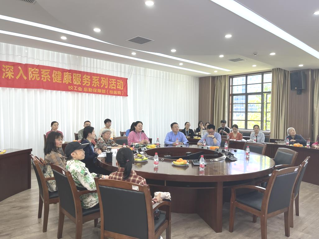 活动伊始,学院党委副书记、纪委书记卿培亮对校医院专家团队的到来表示热烈欢迎。校医院副院长宋烨介绍了校医院基本情况、服务内容及未来发展方向,重点讲解体检中心、全程健康管理、体医融合中心、骨伤针灸理疗科、皮肤科及医疗美容科等特色服务,帮助教职工全面了解校园便捷优质医疗资源。