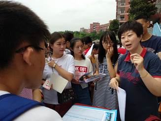 考生及家长结合高考分数及省内排位,围绕学校综合实力、优势学科、师资队伍、以学生为中心的培养体系、培养高素质创新创业人才、加强国际交流、开放性国际化办学、全方位奖助学金政策、学习生活环境、就业情况等多方面开展了咨询。学院招生宣传工作组对2018年川内招生情况、过去三年各专业川内录取分数及排名、加分政策、投档比例、专业录取原则及安排专业规则等方面对楼凤