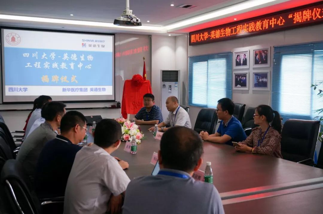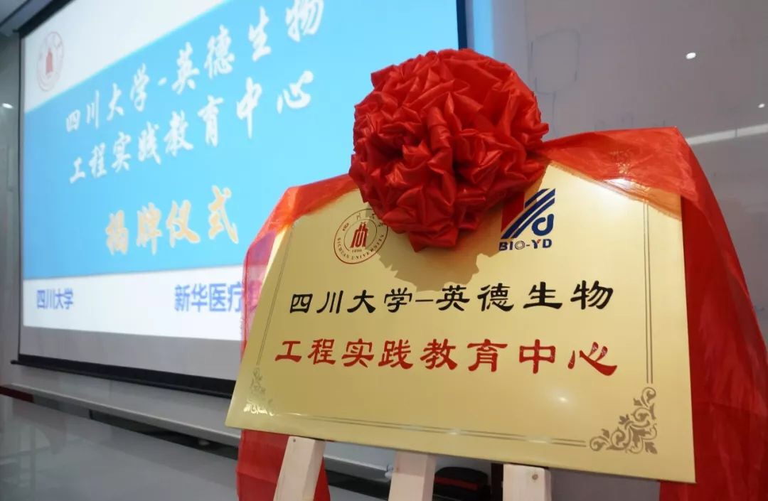 -英德生物工程实践教育中心”揭牌仪式在成都英德生物医药装备技术有限公司隆重举行。英德生物常务副总经理王洪利、副总经理连富春等,楼凤