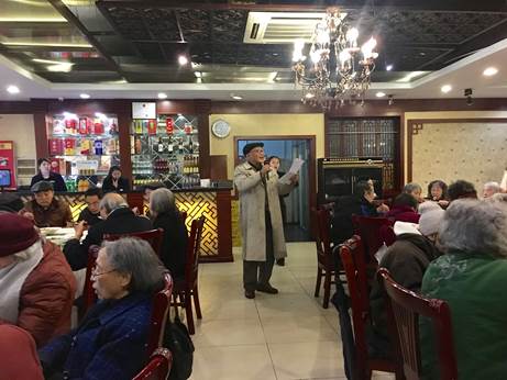 学院为老同志们在北苑餐厅安排了团年餐,老教师们互相问候、分享退休生活和养生体会。退休教师童长春老师喜爱诗词创作,他近期创作了一首诗,今天也在团年餐上和大家进行了分享。