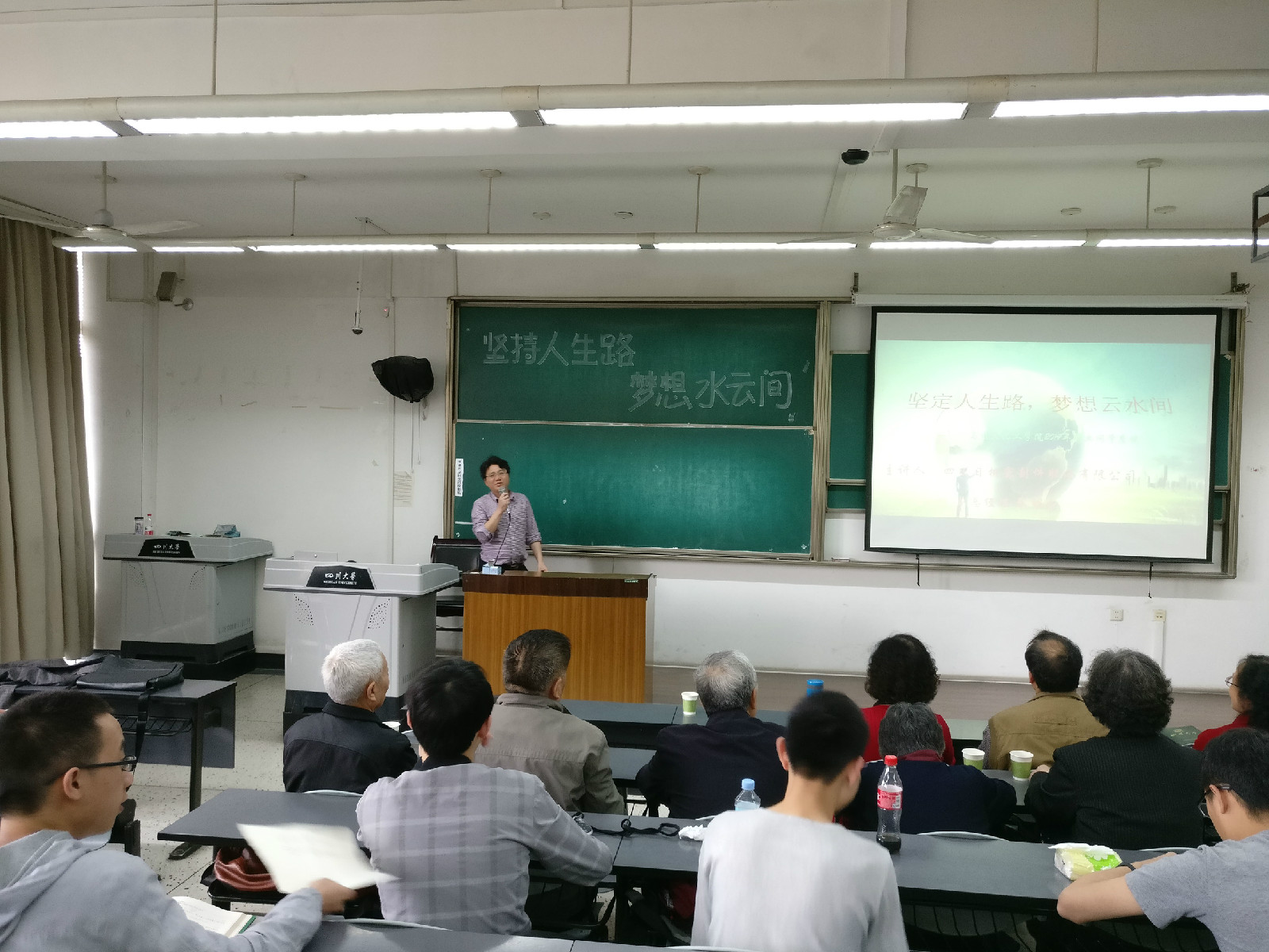 学子作“坚持人生路梦想水云间”职业发展经验分享。参与讲座的嘉宾有,校、院关工委老师曹养书、成丽、付运清、郭明秀、侯筑、贾永炯、寇成平、李国成、梁明征、秦自明、万国荣、肖澜、谢茂农、徐怡、赵雪琴、夏代宽,楼凤
