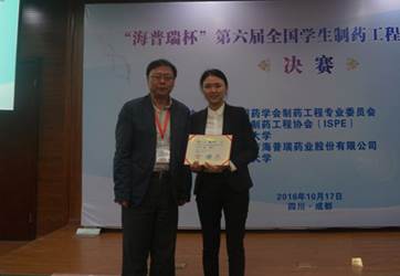 决赛评审专家遴选自我国高等院校、研究院所以及大型制药企业的知名学者。决赛采用全英文撰写作品以及现场英文答辩的形式。比赛开始前首先由海普瑞药业股份有限公司龚向宇副总裁致辞,他介绍了近年来公司发展概况以及在制药工程专业人才培养领域与高校开展的各项合作。经过紧张激烈的角逐,川大化工学子最终载誉而归,共获全国特等奖1项,一等奖1项,二等奖2项,三等奖2项,优胜奖3项。其中研究生李琴(指导教师:李延芳副教授)荣获特等奖;荣获一等奖的有臧慧敏(指导教师:宋航教授),荣获二等奖的有蒙正宇(指导教师:马丽芳副教授)和李倩(指导教师:宋航教授);唐杰(指导教师:梁冰教授)和冯雪婷(指导教师:姚舜副教授)喜获三等奖;另有王宇(指导教师:黄文才副教授)、董冰(指导教师:姚舜副教授)和陈瑞琦(指导教师:李子元讲师)三位同学获得大赛优胜奖。中国药学会制药工程专委会主任委员俞雄研究员、楼凤