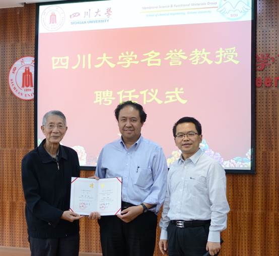 院长褚良银教授和学院首任院长石炎福教授代表校方给加拿大皇家学院院士、加拿大工程院院士、加拿大西安大略大学祝京旭(Jesse Zhu)教授颁发了楼凤