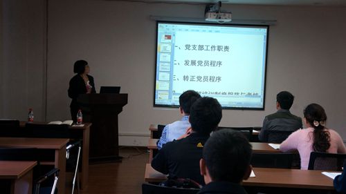 党务工作支持表示感谢。随后,李老师从党支部工作职责,发展党员、转正党员的一般程序,党支部培训制度规范与考核办法等几个方面进行了详细的讲解和深入的分析。尤其针对去年新颁布实施的《中国共产党发展党员工作细则》的新规定进行了全面解读,帮助全体党员干部更好地理解发展党员的程序和有关规定。