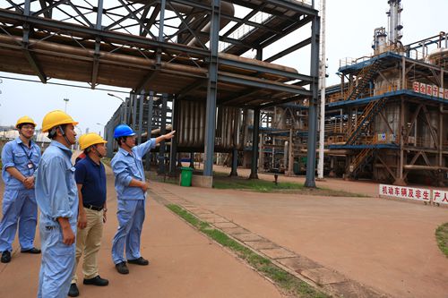 图七 在校友带领下,参观武汉石化公司炼油装置