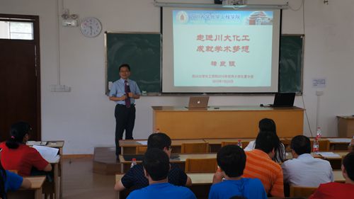 以及川大化工研究生四个方面分享了自己的心得体会。他先从熊猫、峨眉山、九寨沟、美食等颇具代表的四川名片讲起,引发了学生们的兴趣。随后,褚院长对楼凤